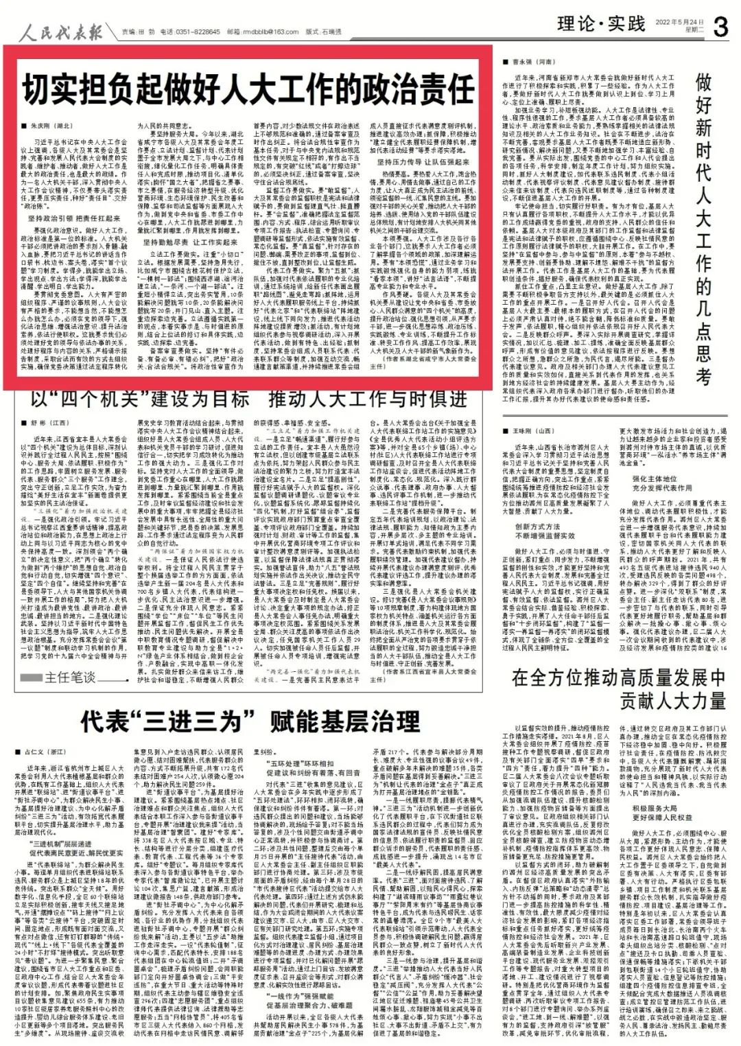 朱庆刚在《人民代表报》发表署名文章:切实担负起做好人大工作的政治责任