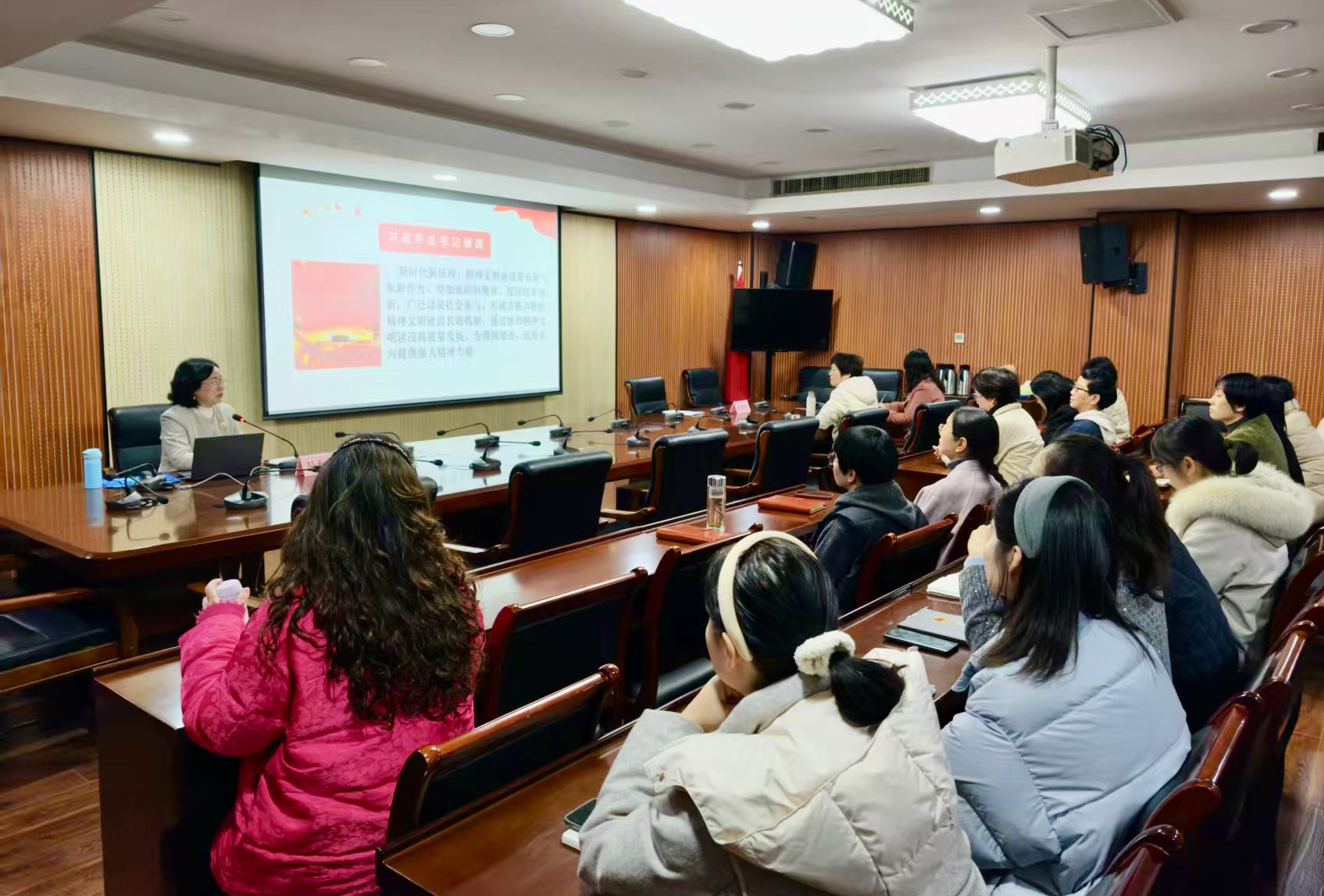 为庆祝第116个国际劳动妇女节,3月4日下午,市人大常委会机关聚焦“巾帼绽芳华 奋进新征程”主题,召开“迎三八·展风采”——思想铸魂·巾帼讲堂公务礼仪专题培训会。会议邀请高级礼仪培训师、湖北科技学院教授孙和平作培训讲座。市人大常委会副主任毛秀君出席会议。